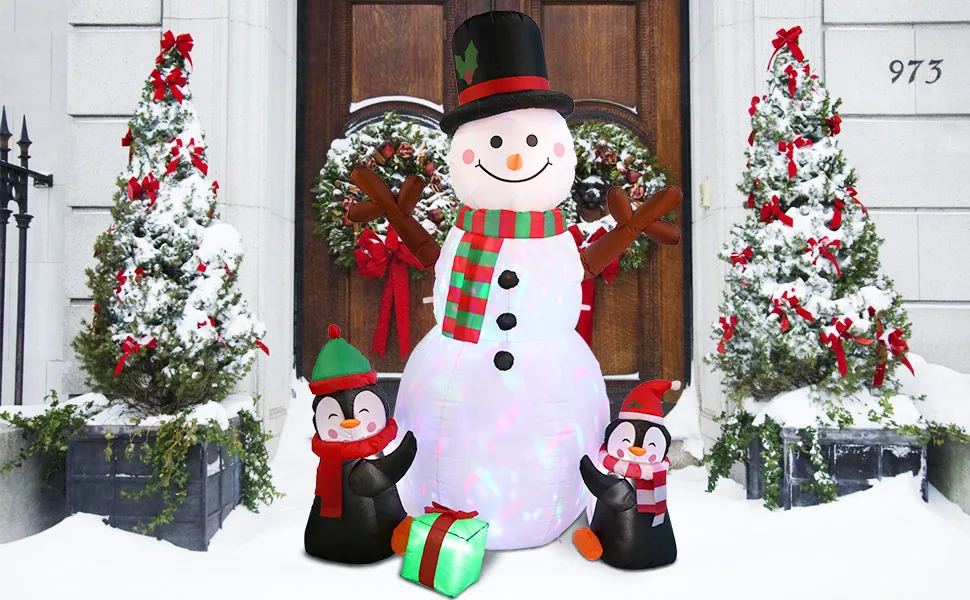 - ◆Perfect Outdoor Christmas Decorations - Funny 6 foot Christmas inflatable snowman with two cute penguins and packaging box, it will definitely attract their attention and delight them when your kids or your guests come at the door or garden